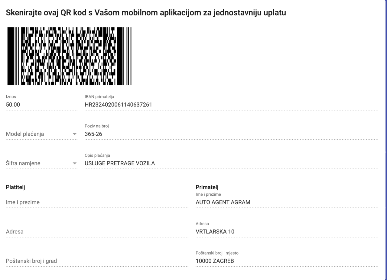 Ovdje moÅūete preuzeti uplatnicu za pretragu vozila ili za izraćun troÅĄkova unosa vozila. Potvrdu uplate potrebno je poslati na mail info@aaagram.eu zajedno sa upitom za pretragu vozila ili izraćun unosa vozila. U mailu obavezno ostavite svoj kontakt telefon.
